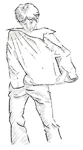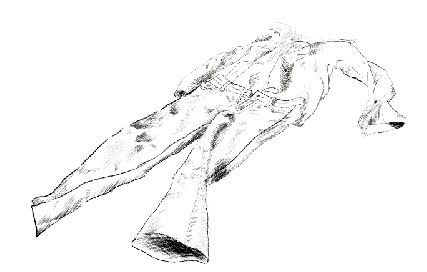 整體畫面運用多種的筆觸與紙紋搭配,衣服是一種,沙漠是一種,頭髮是一種,身體也是一種,影子又是一種,藉由多層次的鉛筆表現,帶給觀者一種淳樸的畫面感受。